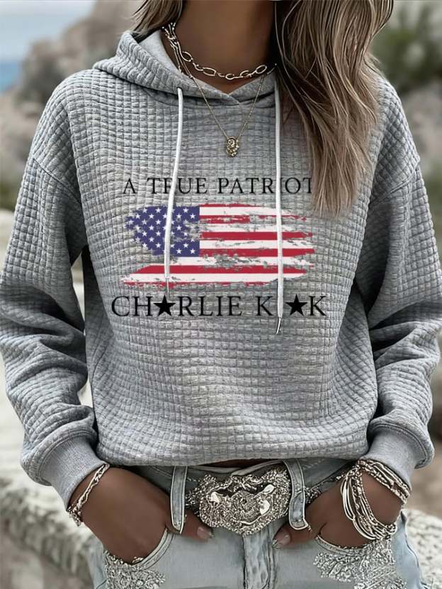 Women's Freedom American Flag Print Casual Hoodie