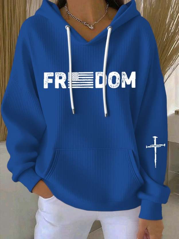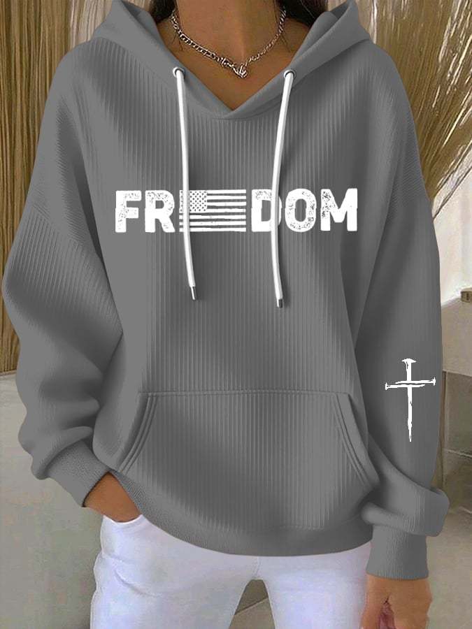 Women's Freedom American Flag Print Casual Hoodie